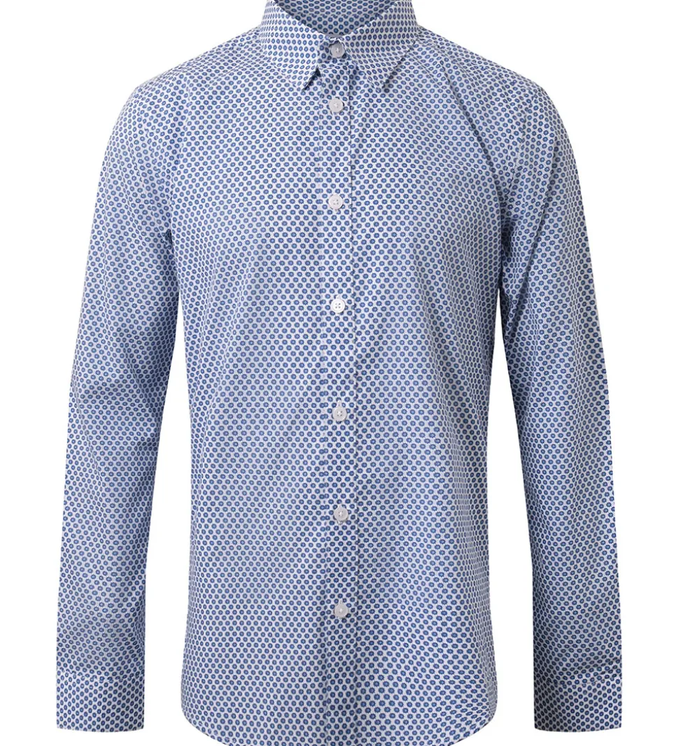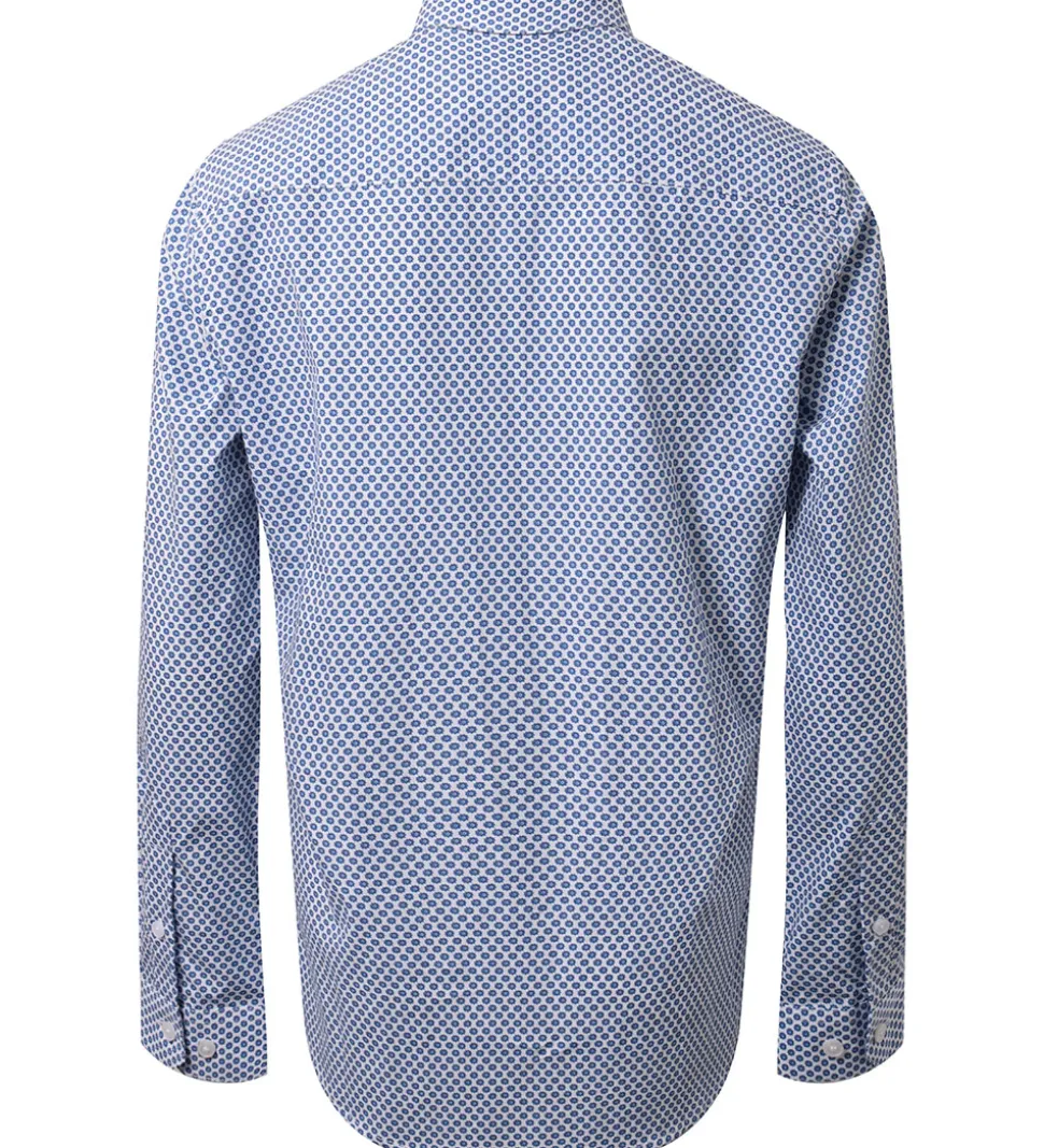 Smart Hound skjorte i hvid med et alloverprint i mørkeblå med små sole.