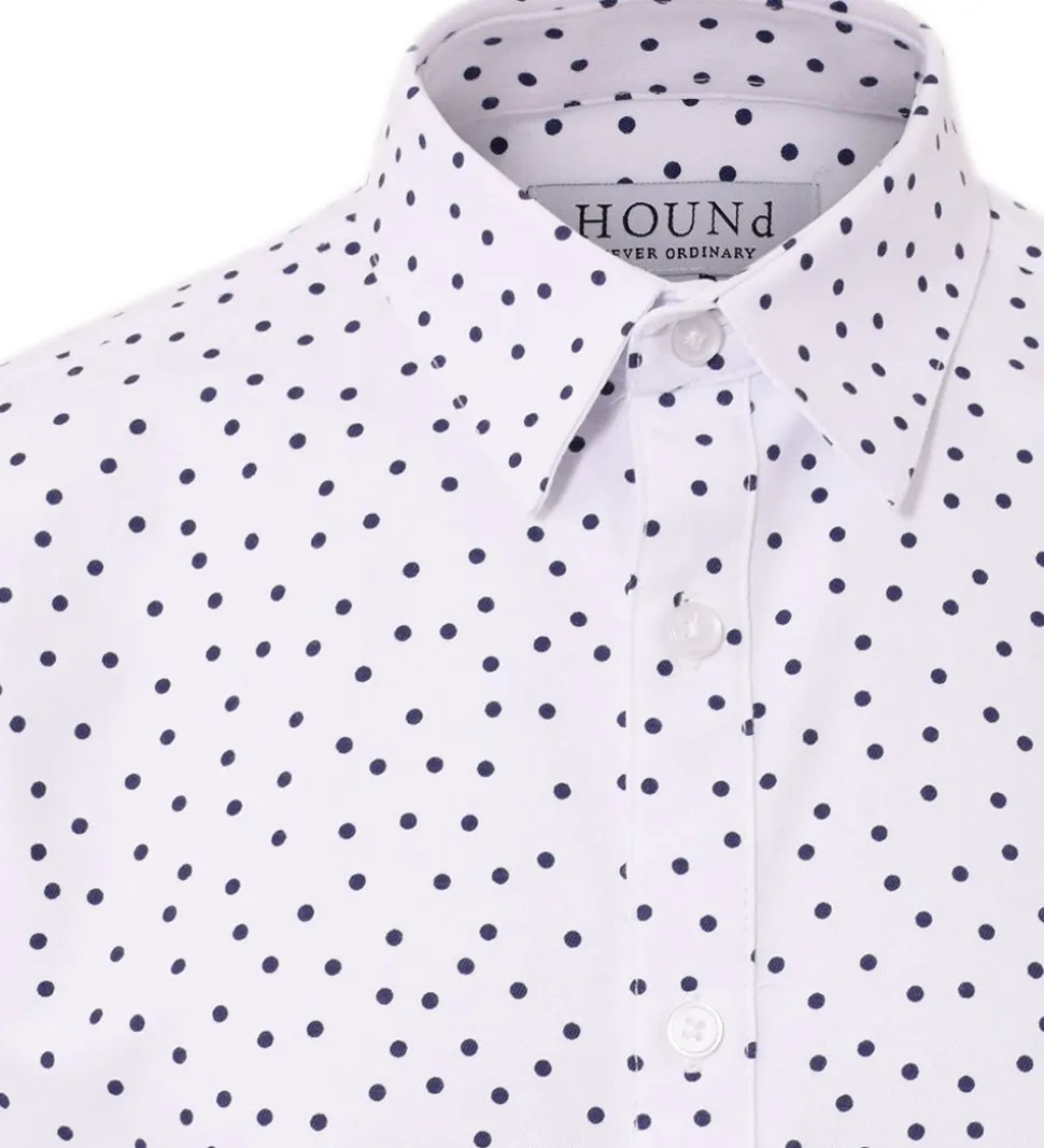 Fin Hound skjorte i hvid, med navy prikker over det hele.