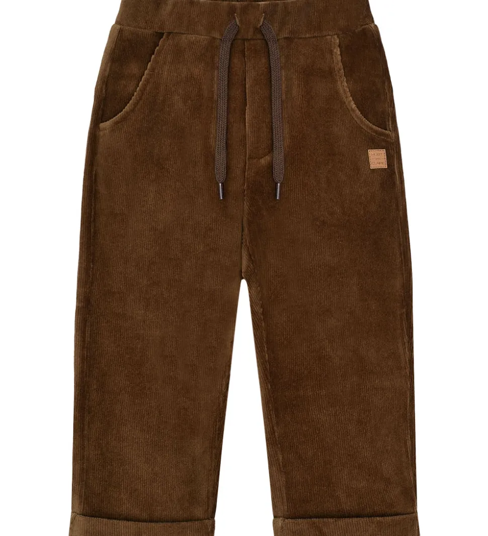 Lækre Hust and Claire fløjlsbukser i ensfarvet brun. Hust and Claire fløjlsbukserne har en justerbar elastikkant i livet, og fortil er der dekorative bindebånd. Foran er der praktiske lommer, og bagpå sidder der to snydelommer.