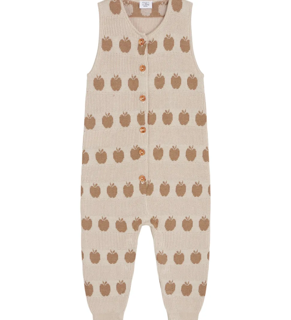 Elegant Hust and Claire heldragt i en lys beige nuance med et charmerende æblemønster i brune toner.