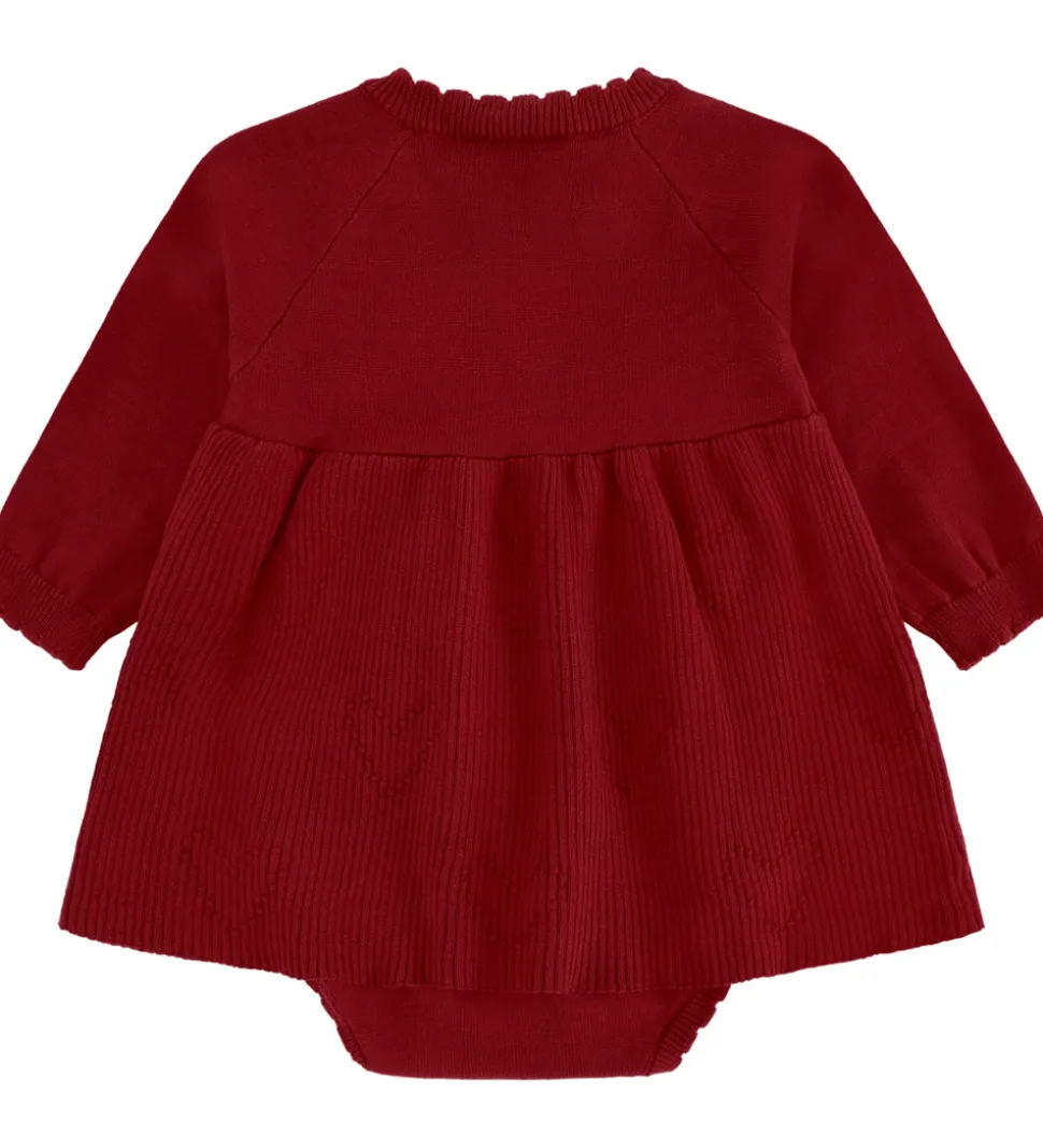 Elegant Hust and Claire kjolebody i en dyb rød farve i en strikket kvalitet med fine hjerter.