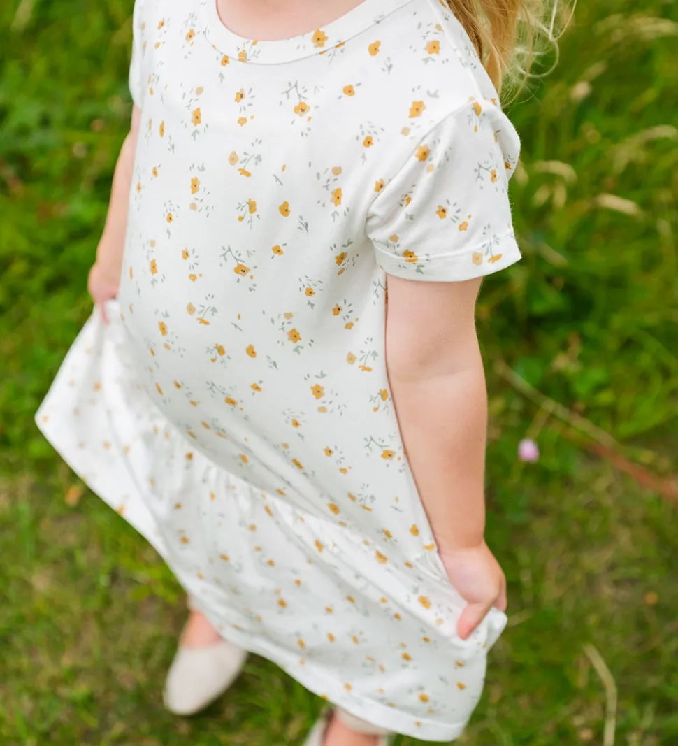 Natkjolen er kortærmet med rund halsudskæring og er i en løs pasform med skørt, der skaber en let fald.