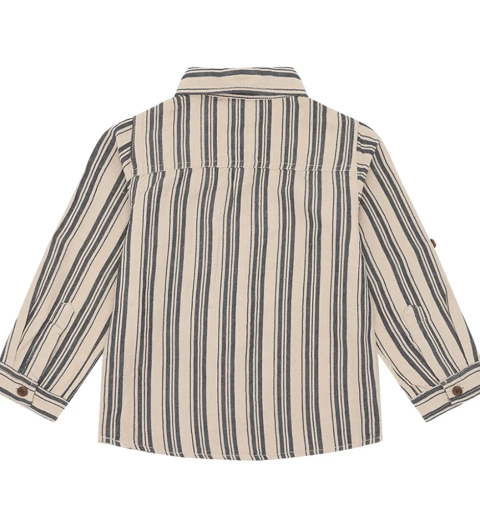 Hust and Claire skjorten har lange ærmer med slids og knaplukning samt en klassisk ombukket krave. Skjorten har en gennemgående knaplukning fortil med knapper i trælook samt en åben brystlomme i venstre side. Skjorten har en knap midt på ærmerne og indvendig strop, så ærmerne kan foldes op, og den er fremstillet i en lækker fastvævet kvalitet.
