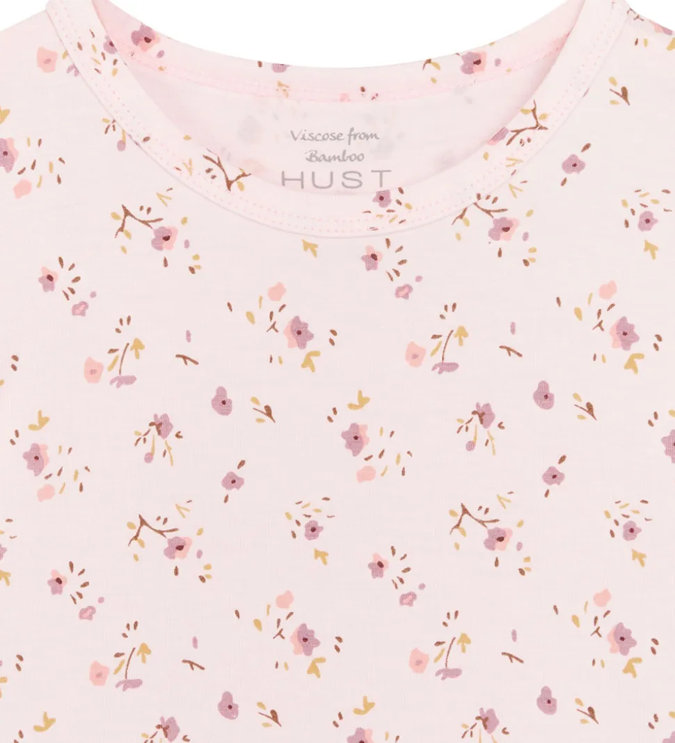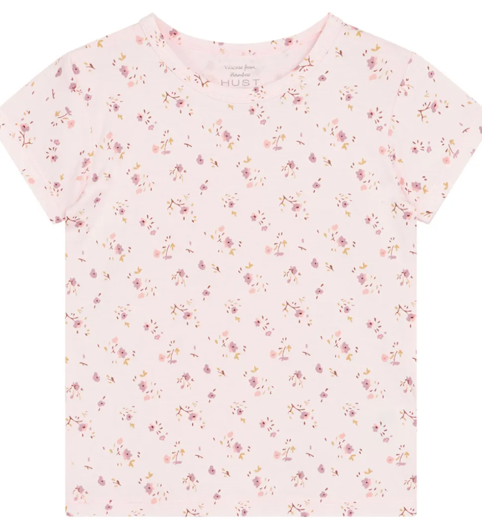 Skøn Hust and Claire t-shirt i en lys rosa nuance. T-shirten har et delikat blomsterprint i rosa, lilla og brune nuancer, der tilføjer et friskt og legende udtryk til garderoben. Perfekt til varme dage og hygge stunder.
