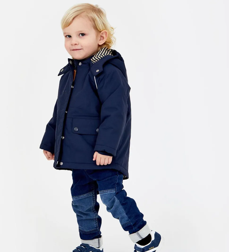 Flot Hust and Claire vinterjakke i navyblå med praktiske reflekspipings omkring skuldrene og på hætten.