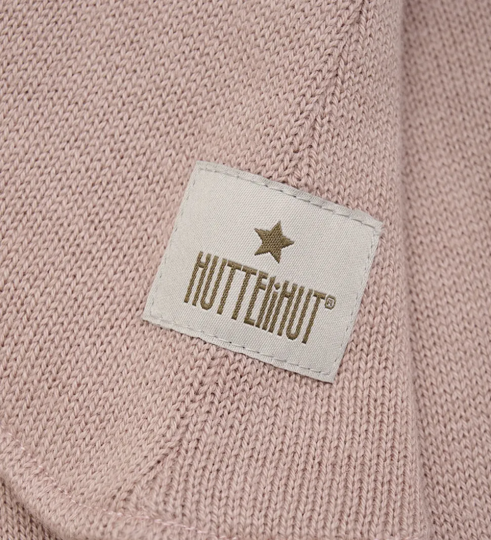 Sød Huttelihut elefanthue strikket i rosa. Huttelihut elefanthuen består af to lag og har en spids hovedform, samt en split-effekt i bunden. Elefanthuen er fremstillet i en lækker blanding af merinould og bomuld.