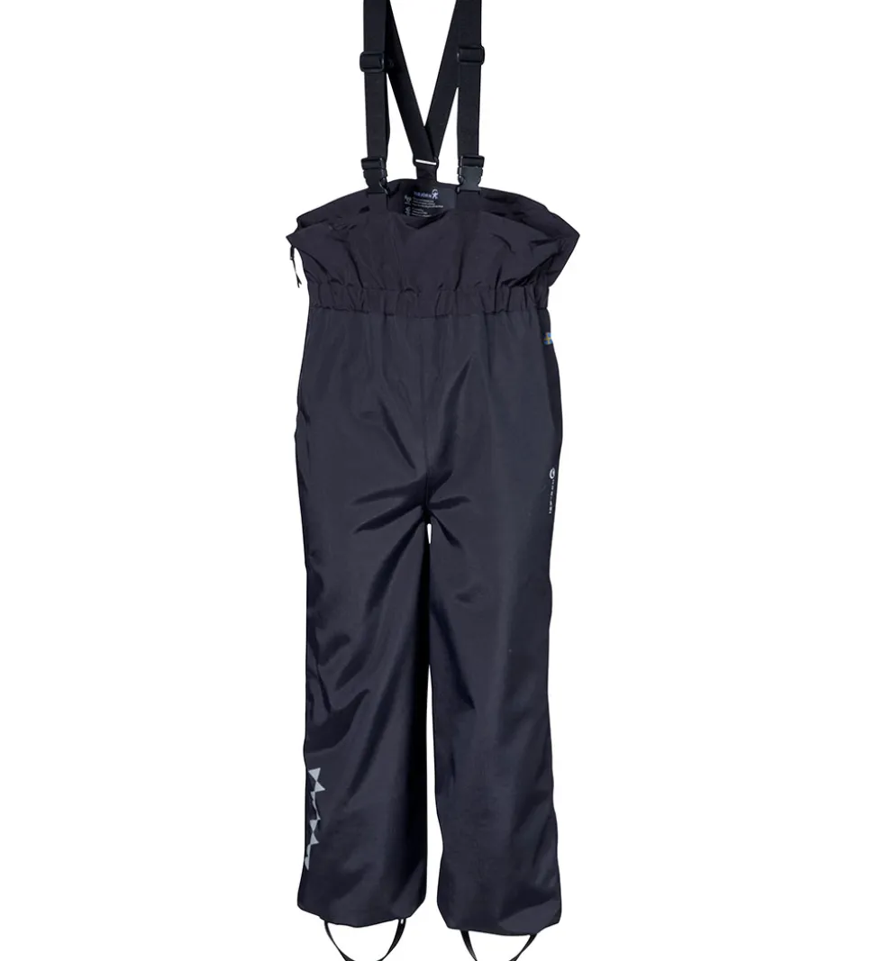 Isbjörn Of Sweden skalbuksernes benåbninger har elastikkanter med indvendig gummibelægning. Der er også aftagelige, justerbare støvlestropper i gummi, som der medfølger én ekstra af.