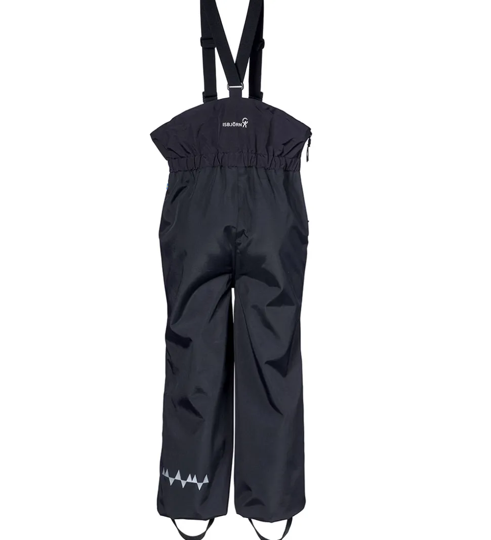 Isbjörn Of Sweden skalbuksene går højt op og dækker en god del af overkroppen. De har smarte, justerbare seler, som samles på ryggen, og lukkes med klipspænder fortil. Omkring taljen er der en praktisk elastikkant, som kan løsnes ved hjælp af en lynlås i højre side.