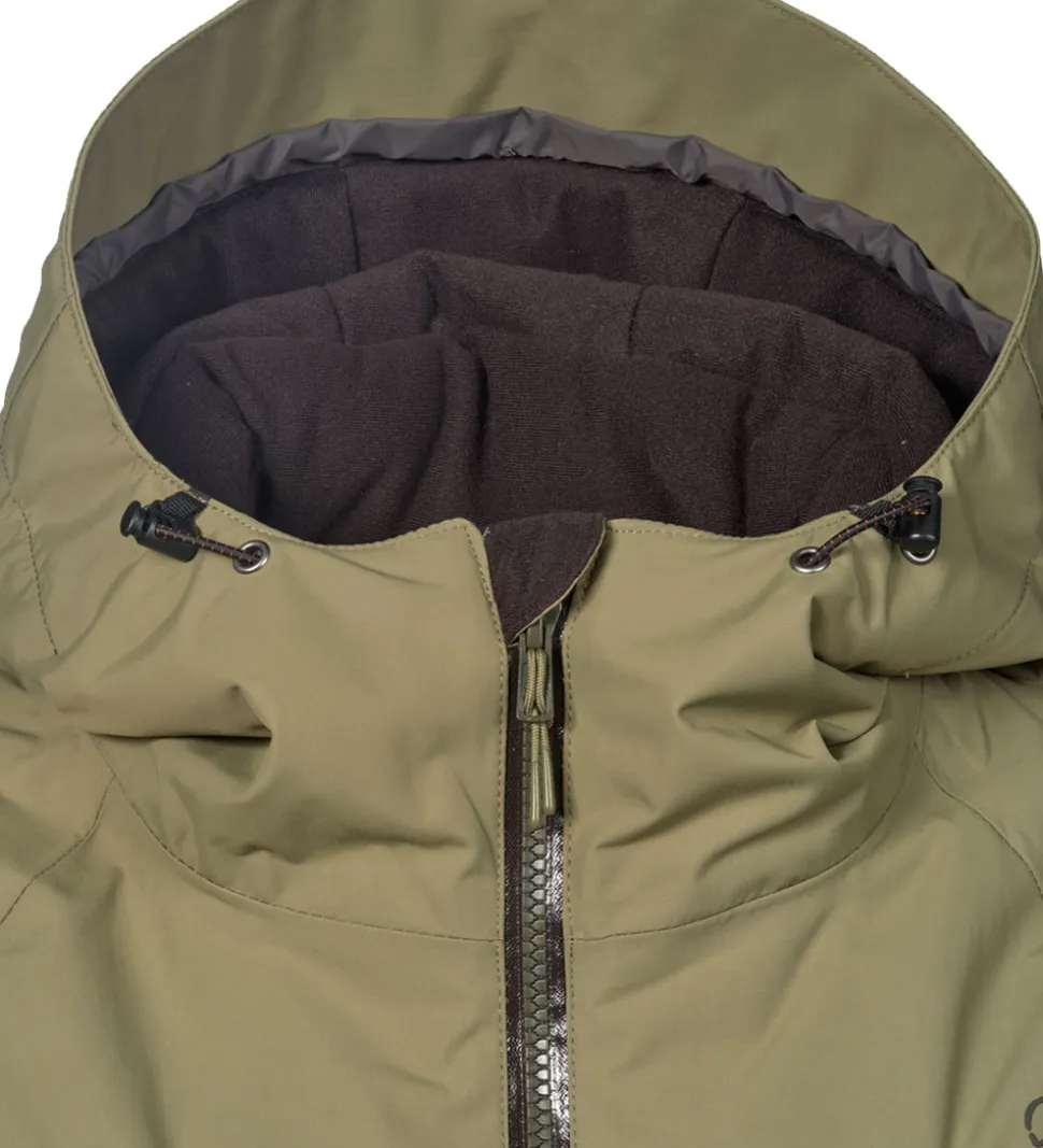 Flot Isbjörn Of Sweden vinterjakke i støvet grøn. Vinterjakken har grå logoprint på venstre bryst og hætten samt smarte refleksprint på lænden og højre skulder.