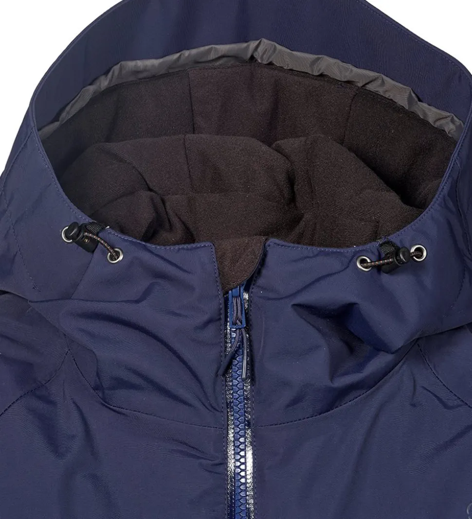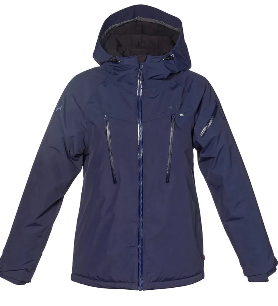 Flot Isbjörn Of Sweden vinterjakke i navyblå. Vinterjakken har grå logoprint på venstre bryst og hætten samt smarte refleksprint på lænden og højre skulder.