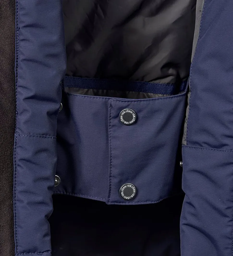 Isbjörn Of Sweden vinterjakken åbnes fortil ved hjælp af en lynlås med hagebeskytter og indvendig vindstolpe, der begge er fleeceforede.