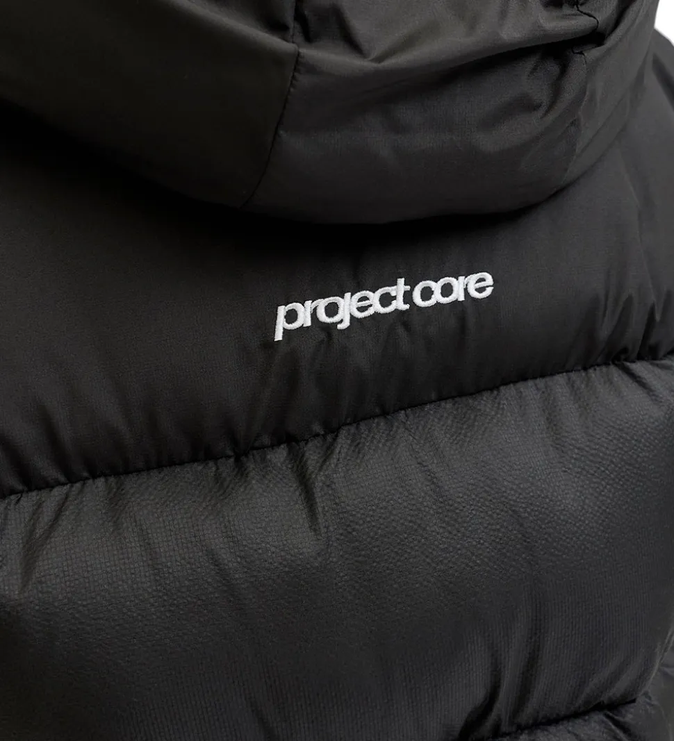 Jack & Jones dynefrakken går godt ned over numsen og lårene. Dynefrakken har en fast hætte og gennemgående lynlås fortil med hagebeskytter og udvendig vindstolpe, som lukkes til med trykknapper. Den har lange ærmer med elastikkanter. Fortil er der to sidelommer med trykknapsåbning.