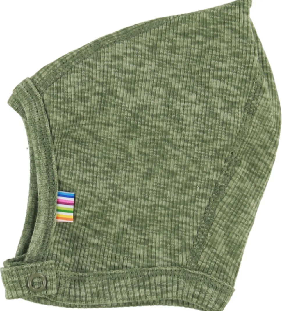 Skøn Joha hjelm i meleret grøn med en fin ribstruktur.