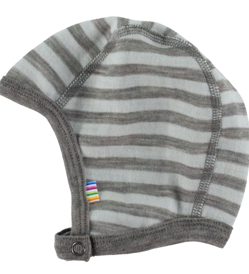 Joha babyhjelmen har en rund hovedform og kan lukkes med praktiske trykknapper under hagen, som har to indstillinger. Babyhjelmen er fremstillet i en blød og behagelig uldkvalitet.
