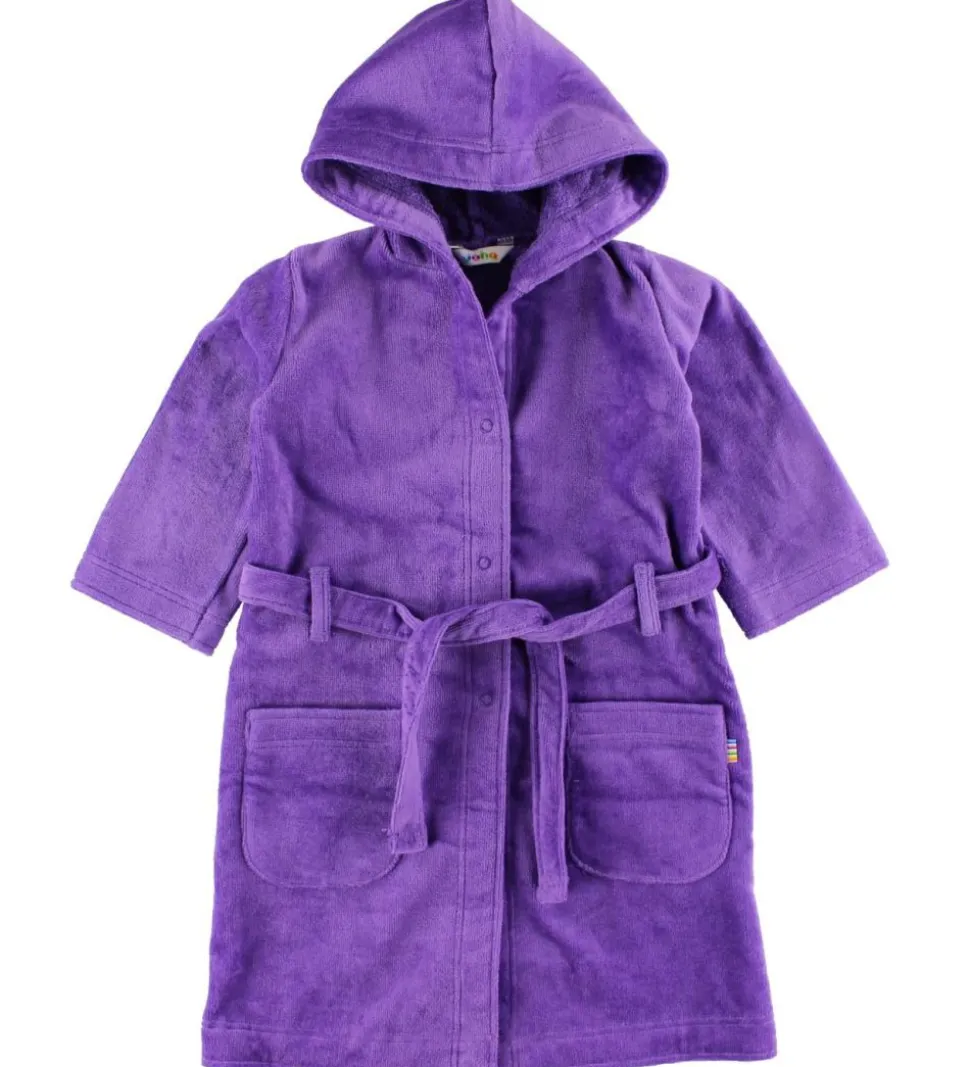 Lækker Joha badekåbe i lilla med lommer, bælte og lange ærmer.