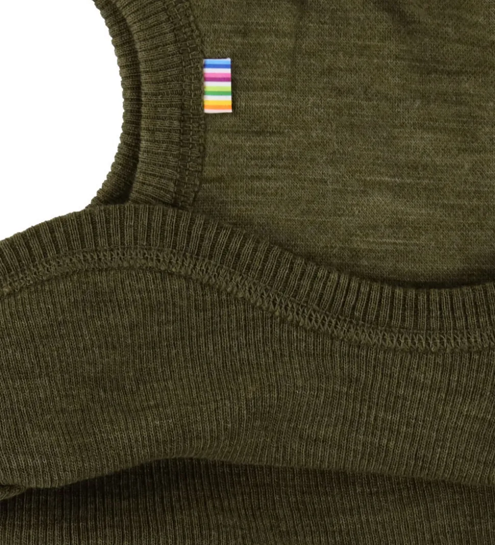 Funktionel Joha elefanthue i olivengrøn med ribkant. Joha elefanthuen har en rund hovedform og består af to lag med fine knapdetaljer i siden. Den har en skøn split-effekt i bunden, der sikrer en god pasform.