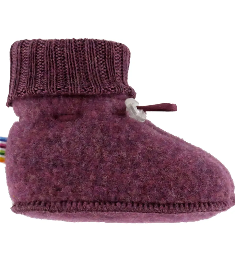 Komfortable Joha futter i en skøn, mørkelilla nuance. Joha futterne har en ombukket ribkant samt justerbare elastiksnører, der sikrer en god pasform. Ideelle til at holde små fødder varme.