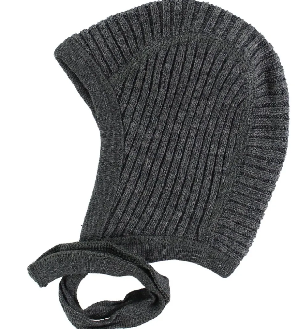 Den er lavet i tyk rib kvalitet og lukkes med bindebånd.