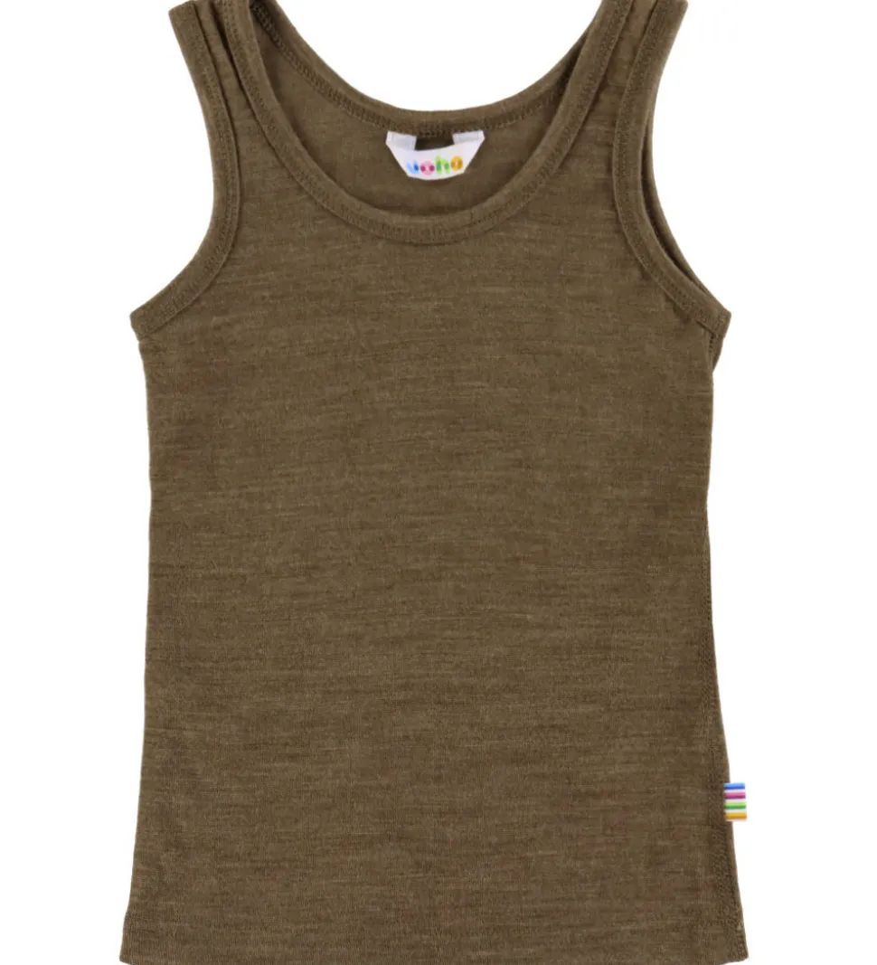 Elegant Joha undertrøje i en flot brun farve. Undertrøjen har brede stropper og et enkelt design uden mønster eller print. Kvaliteten er uforlignelig, og Joha sikrer høj standard med denne struktur. En diskret regnbuefarvet label i siden tilføjer et lille farverigt touch.