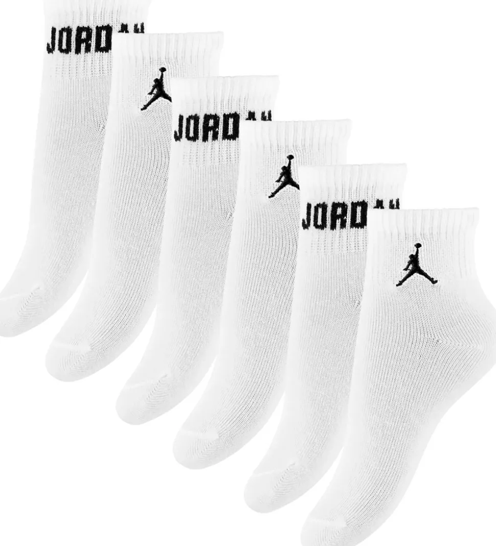 Fine Jordan ankelstrømper solgt i en sampak med seks par i hvid og med forskellige sorte detaljer. Ankelstrømperne har et kort skaft med en smal ribkant.