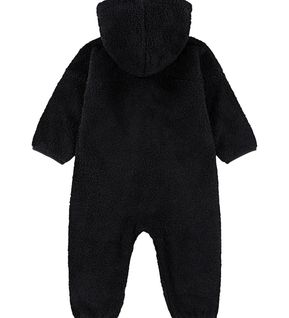 Lækker Jordan fleecedragt i sort teddyfleece, og fortil i venstre side er der broderet et guldfarvet logo.