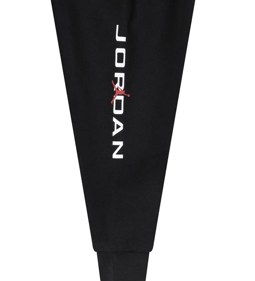 Blødt Jordan sweatsæt, der består af en hættetrøje og et par sweatpants. Begge dele er sort med logoprint.