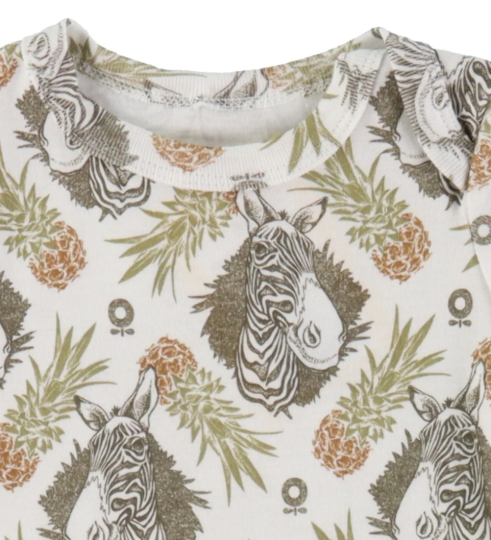 Nydelig Katvig sommerdragt i hvid med et tropisk alloverprint af zebra og ananas i grønne og brune farver.