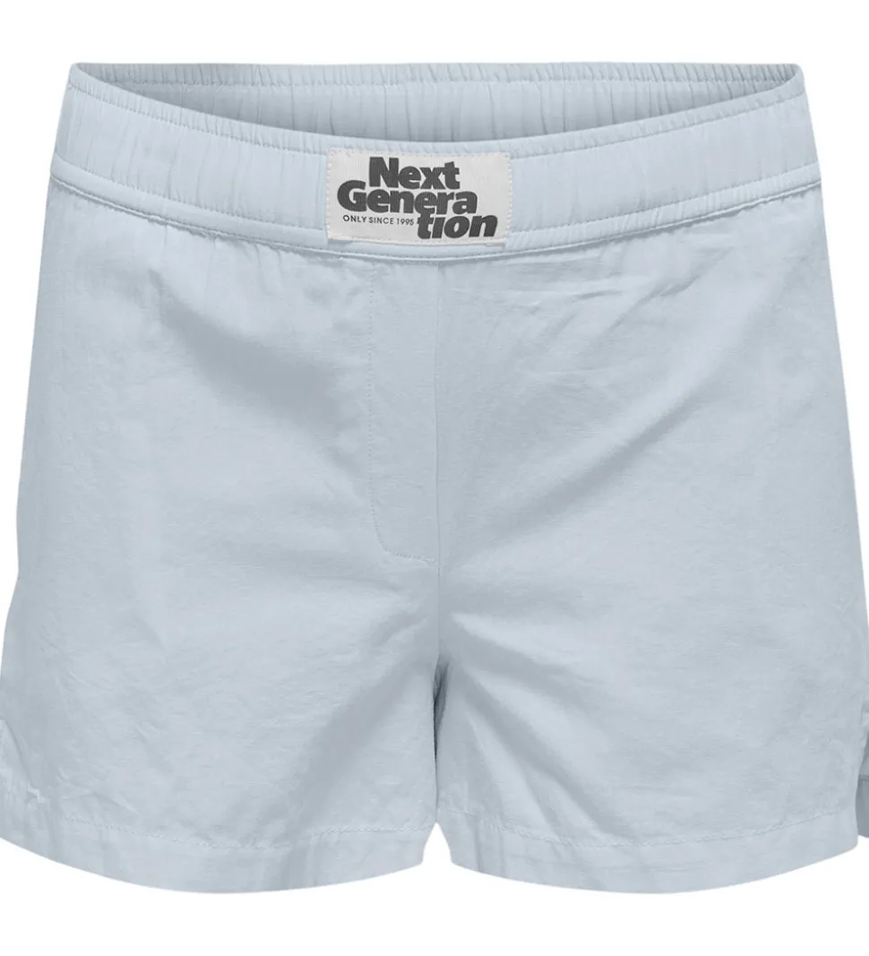 Stilfulde Kids Only shorts i lysblå. Shortsene har et elastisk taljebånd for en god pasform og en dekorativ patch med teksten “Next Generation” foran. Kids Only shortsene er designet med sidelommer.