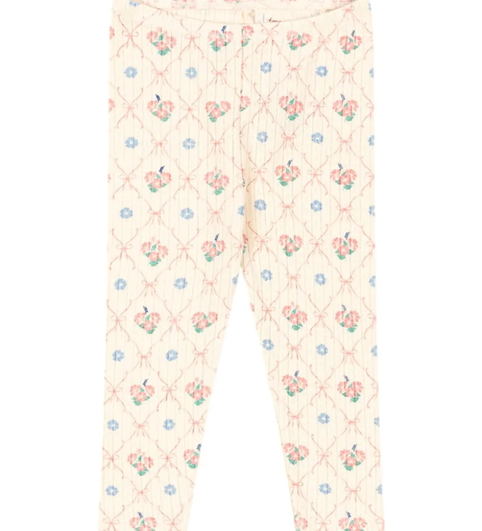 Charmerende Konges Sløjd leggings i lysebige med et delikat blomstermønster i pastelfarver. Konges Sløjd leggingsene har en elastisk talje og en blød, ribbet struktur.
