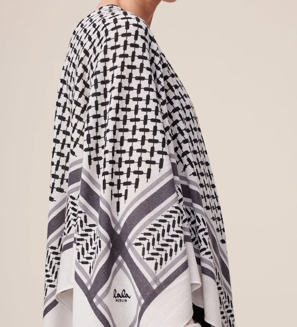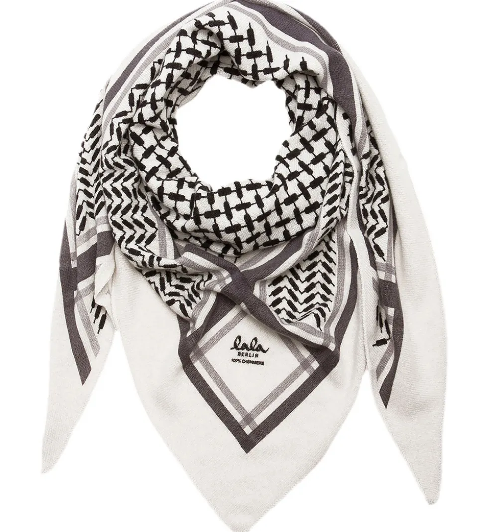 Fint Lala Berlin tørklæde i hvid med det klassiske Kufiya mønster i sort.