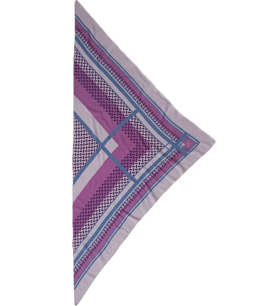 Skønt Lala Berlin tørklæde i lilla, lyslilla og støvet blå med det klassiske Kufiya mønster i mørklilla.