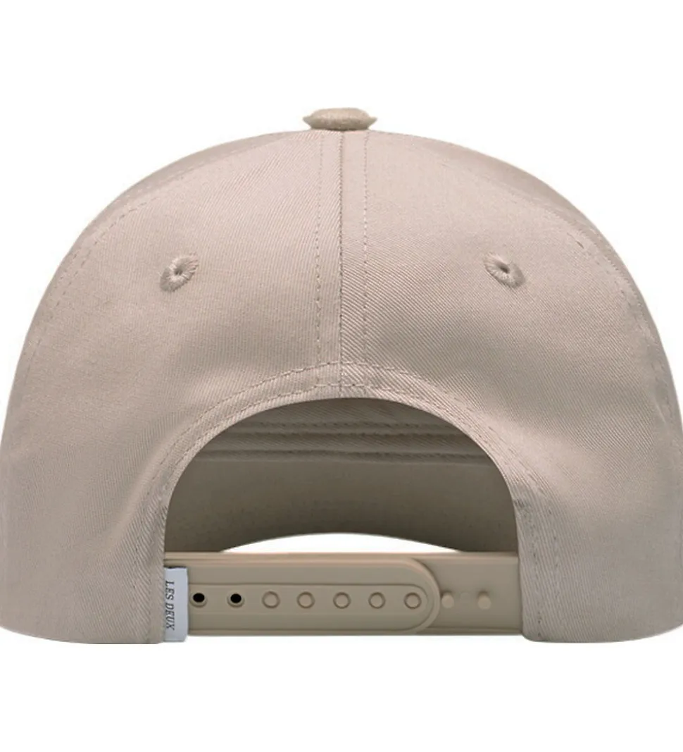 Sej Les Deux kasket i beige med et stort, broderet logo på fronten i brun.