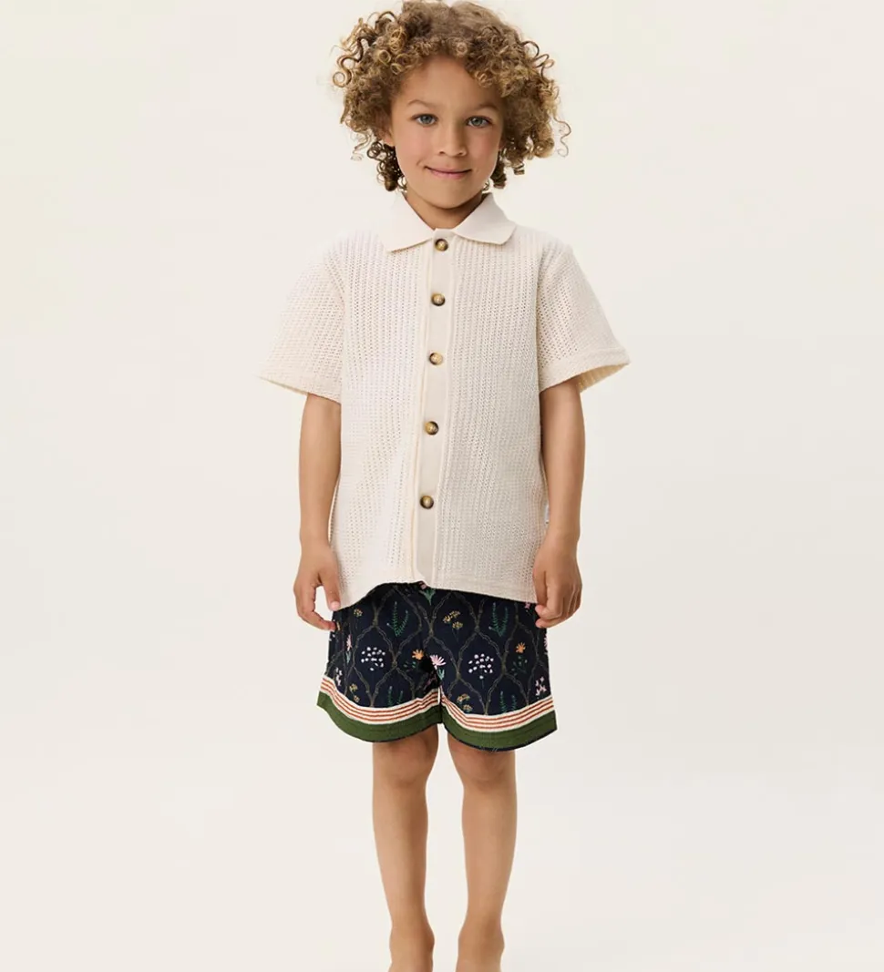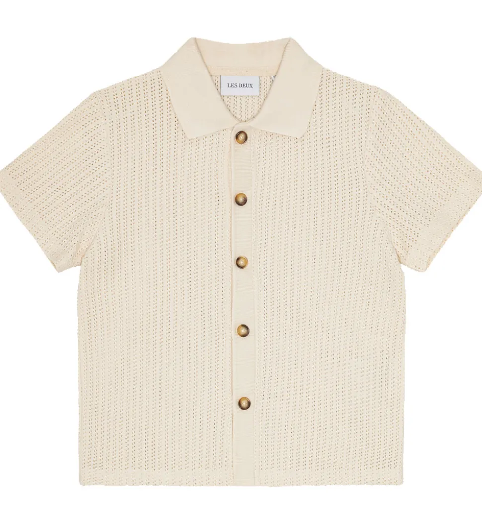 Elegant Les Deux skjorte i strikket kvalitet med korte ærmer i råhvid nuance og stilfulde knapper på fronten. Les Deux skjorten er velegnet til dem, der sætter pris på et enkelt og pænt design.
