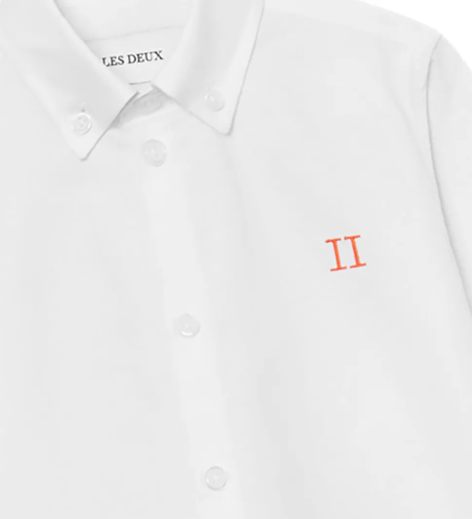 Lækker Les Deux skjorte i hvid med en diskret logo broderet i orange på brystet.