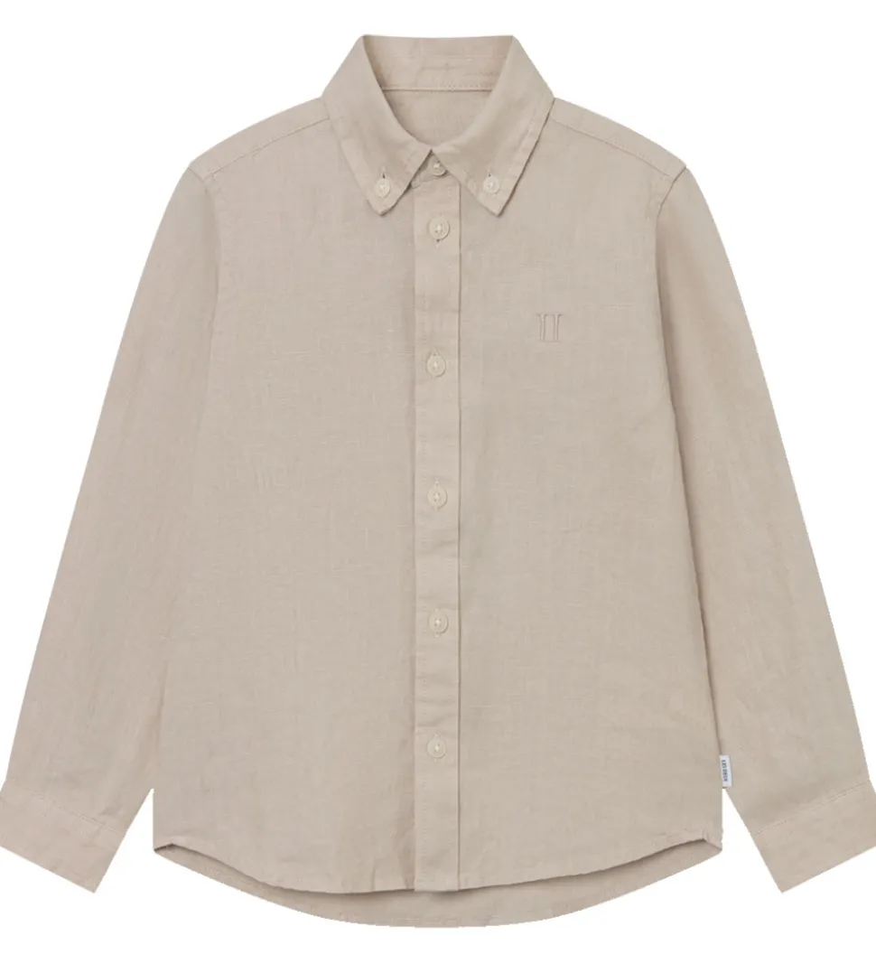 Elegant Les Deux skjorte i beige. Skjorten har en diskret logo broderet i på brystet, hvilket tilføjer et stilfuldt præg til designet.