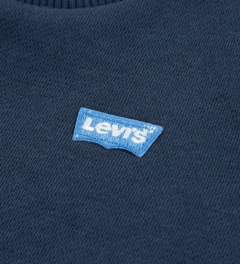 Levis sweatshirten har lange ærmer og en rund halsudskæring, hvilket giver et enkelt og klassisk look. Den har ribkanter ved håndleddene og taljen, som giver en god pasform. Sweatshirten lukkes i nakken med trykknapper.