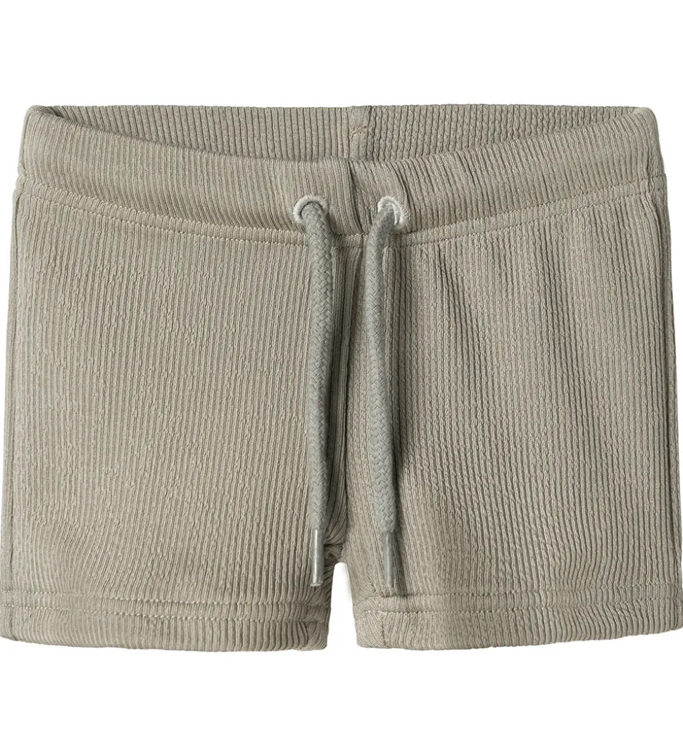 Enkelte Lil Atelier badebukser i en afdæmpet, grøn nuance med en struktureret overflade, der tilføjer et subtilt touch til designet.