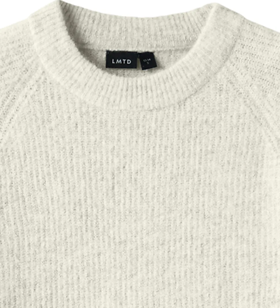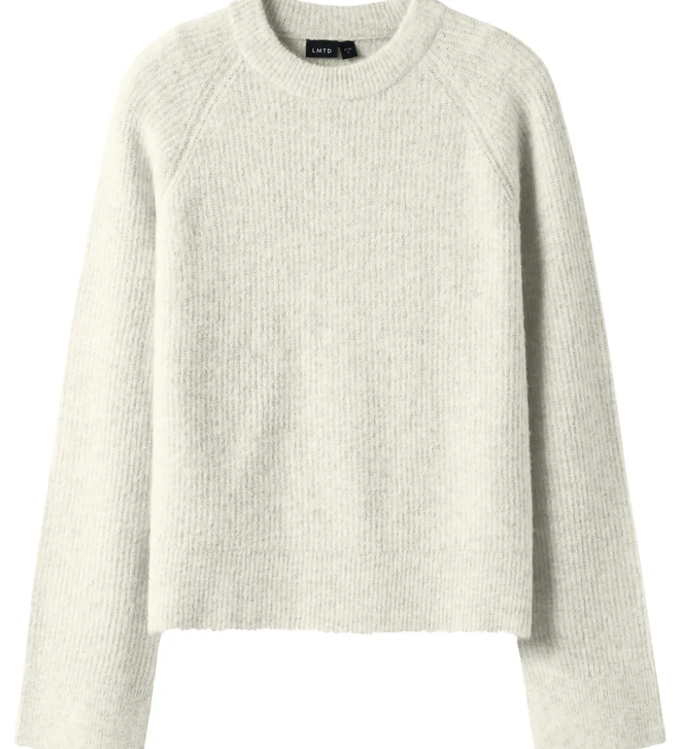 Flot LMTD bluse i meleret råhvid med ribstrikket struktur. Blusen har en rund halsudskæring med ribkant og lange ærmer.