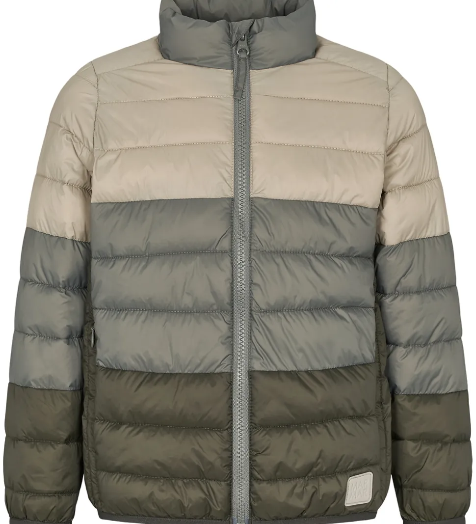 Smart MarMar dunjakke med brede, vandrette striber i grå nuancer.