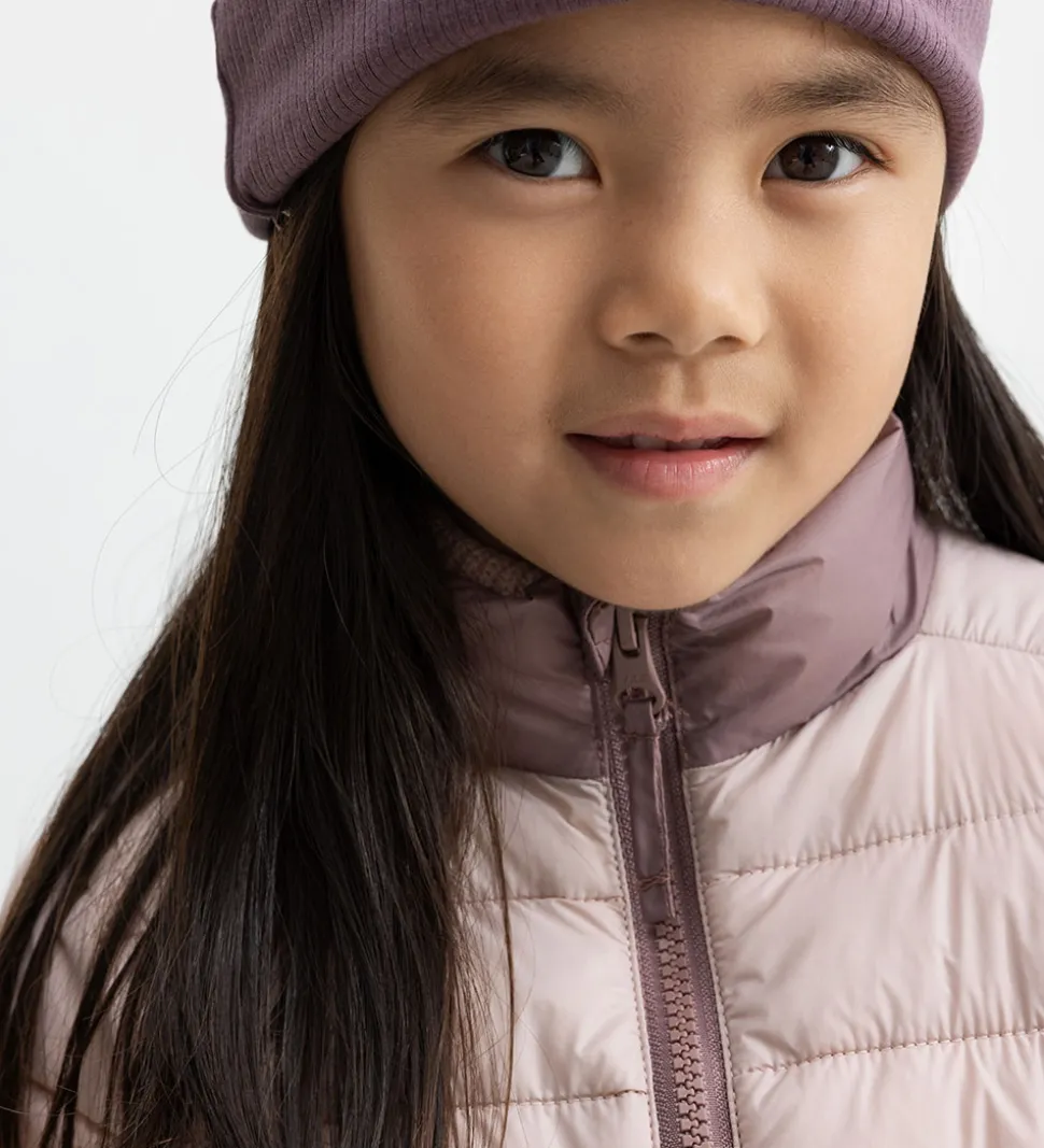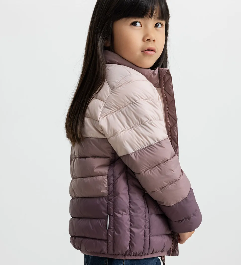 Flot MarMar dunjakke med brede, vandrette striber i rosa nuancer.