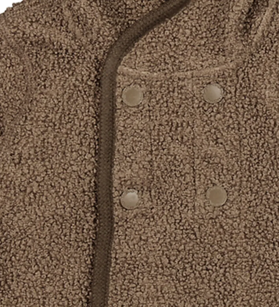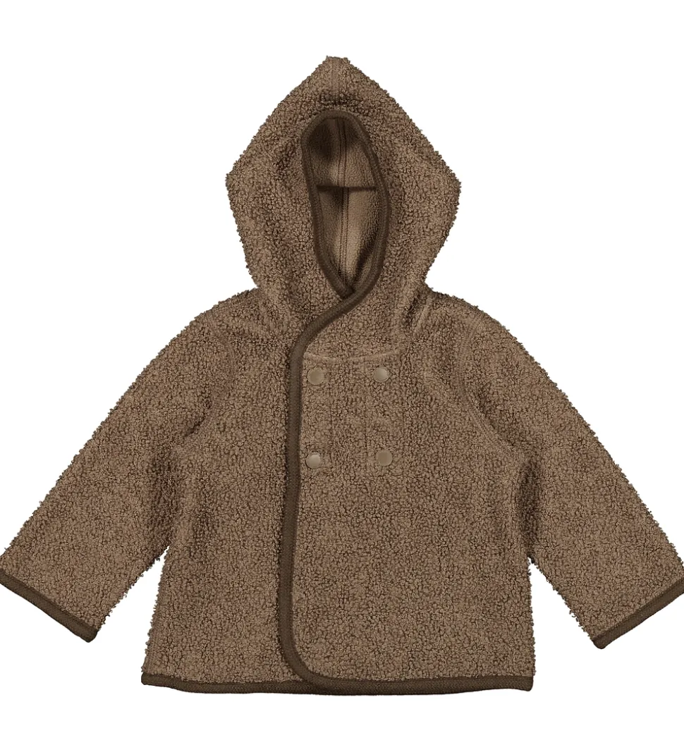 Flot MarMar fleecejakke i brunt teddyfleece og med mørkebrune detaljer.