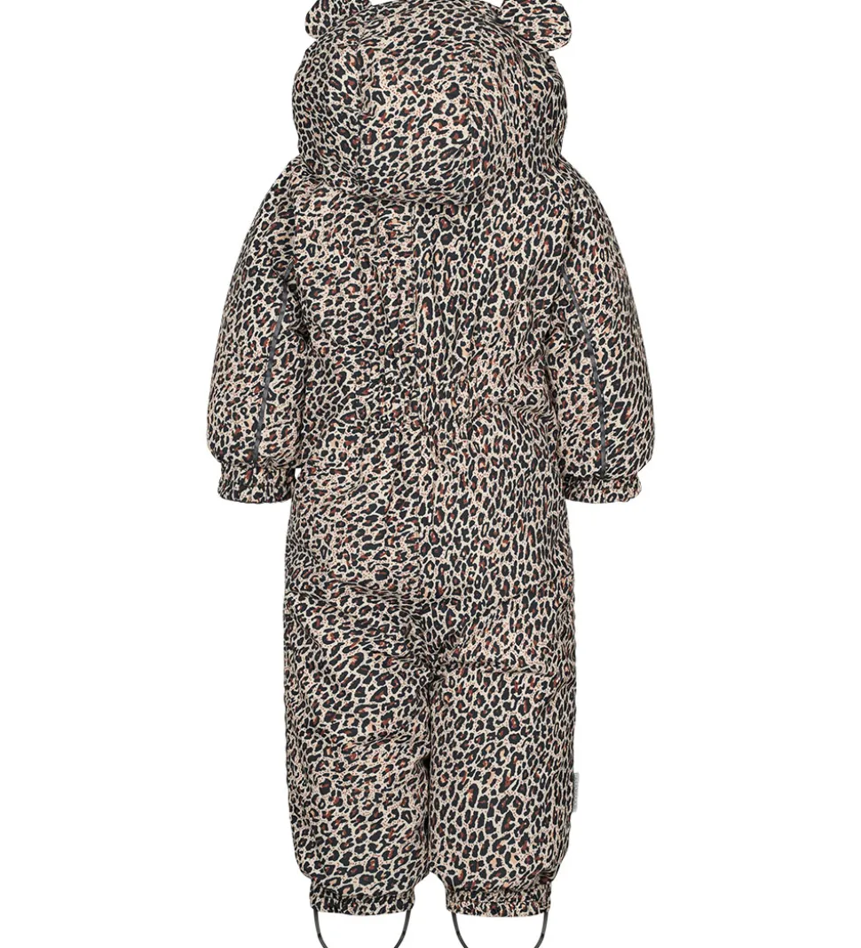 Smart MarMar flyverdragt med leopradprint i beige, brun og sort. Flyverdragten har praktiske refleksdetaljer.