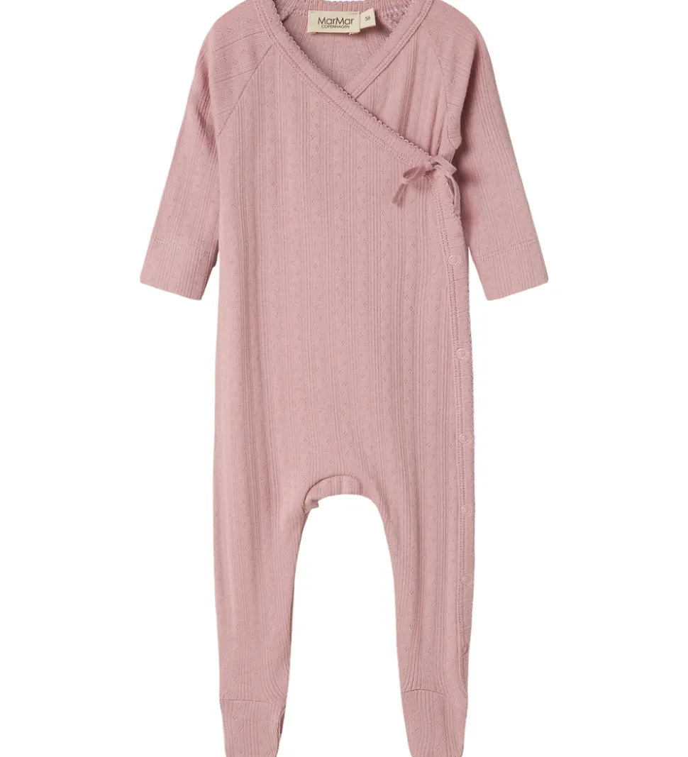 Elegant MarMar heldragt i en behagelig støvet rosa nuance med et diskret hulmønster.