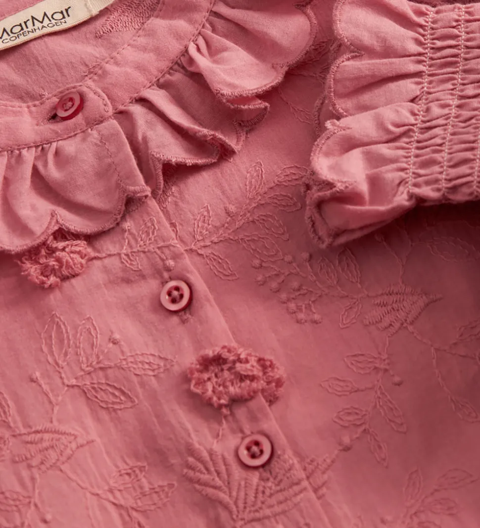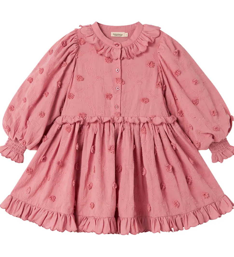 Elegant MarMar kjole i en støvet, rosa nuance. MarMar kjolen har lange ærmer med elastik og flæser ved håndleddene.