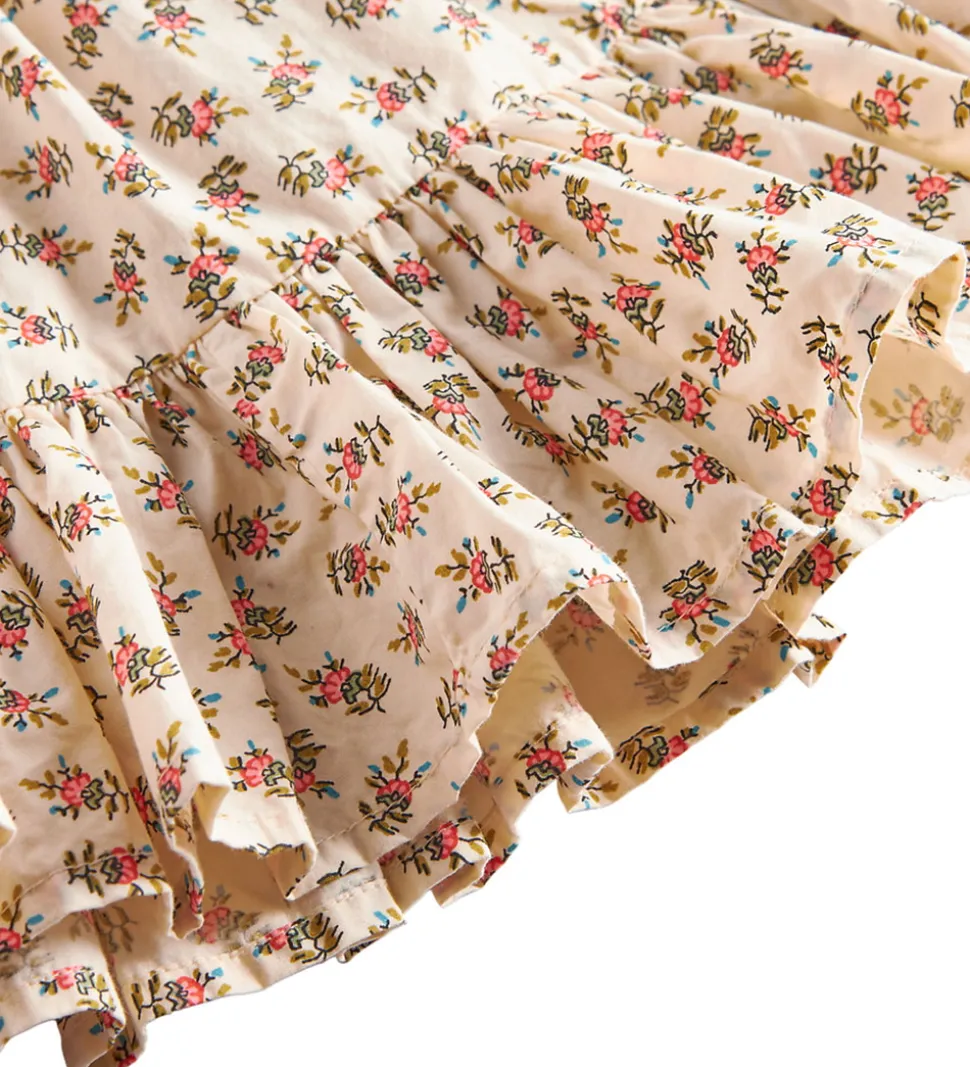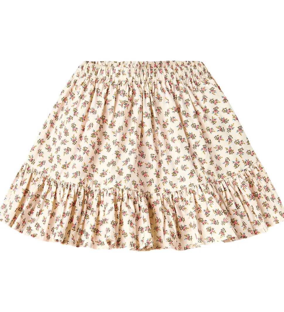 Elegant MarMar nederdel i beige med et smukt blomsterprint i rosa, grønne og blå nuancer.