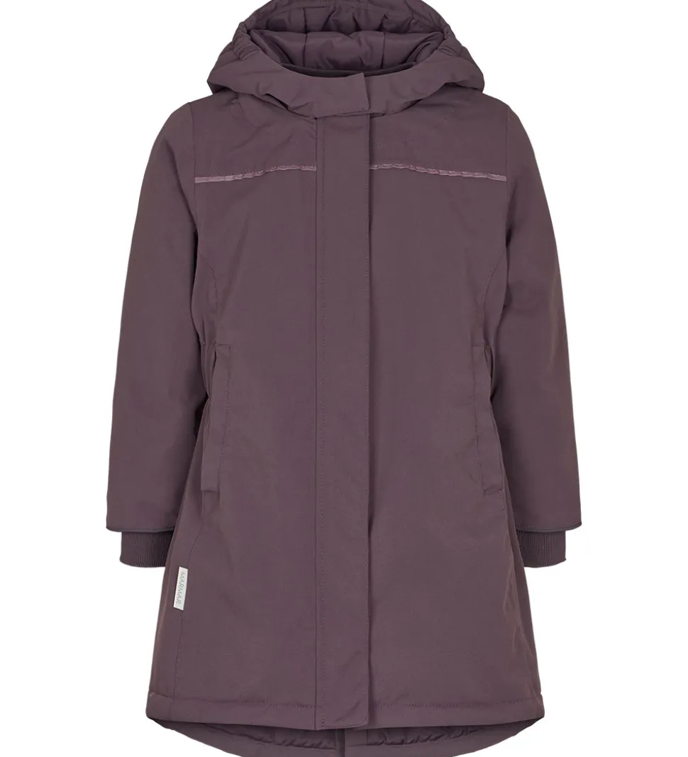 Skøn MarMar vinterjakke i mørk lilla med praktiske refleksdetaljer.