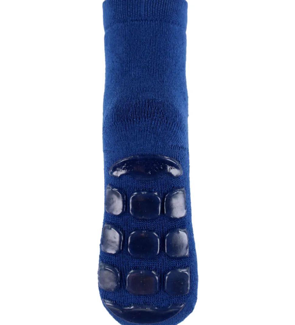 Melton strømperne har et almindeligt længde skaft, og de har har blødt frotté på indersiden, så fødderne holdes dejligt lune. Under fødderne er der firkanter af silikone, som gør strømperne skridsikre.
