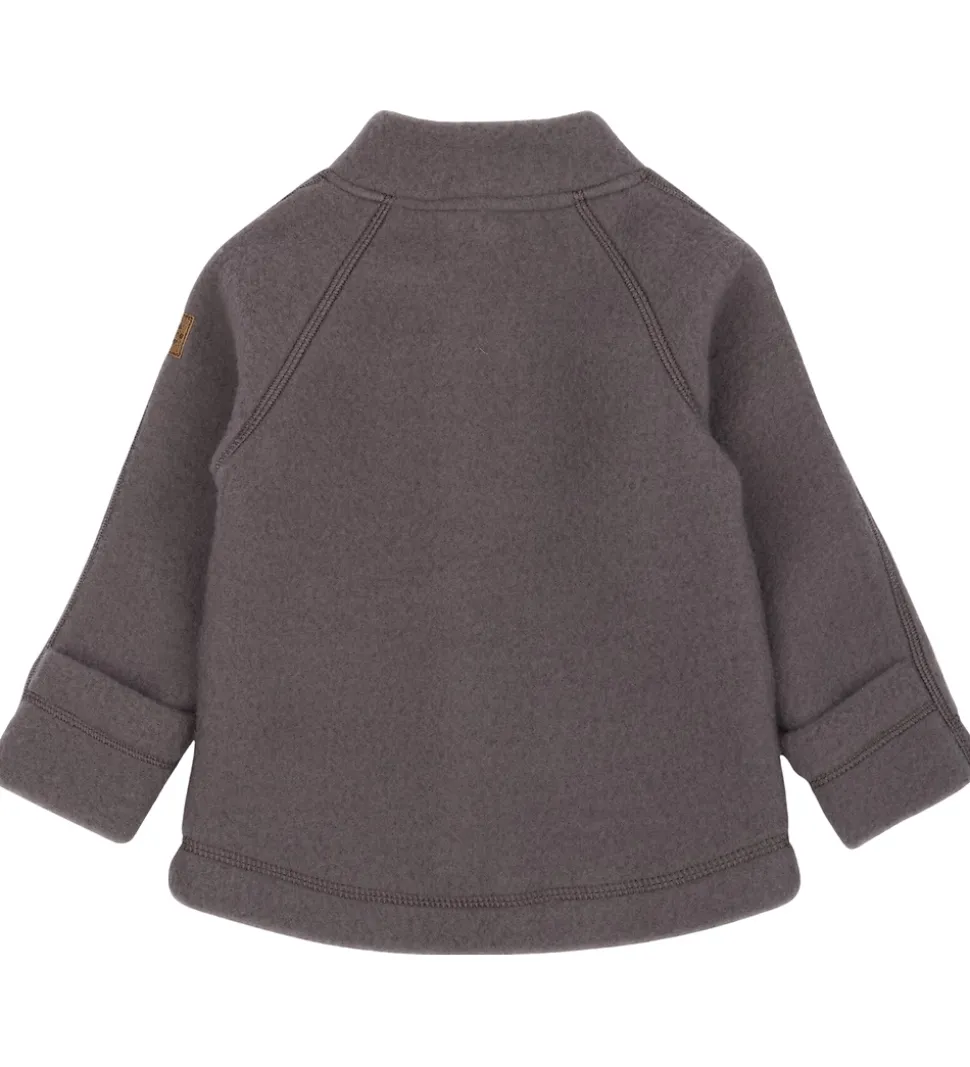 Lækker Mikk-Line cardigan af filtet merinould i mørk, støvet lilla.