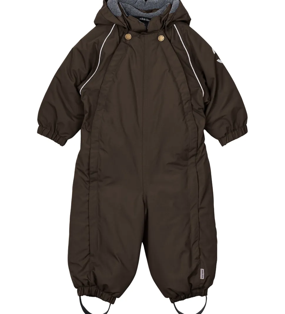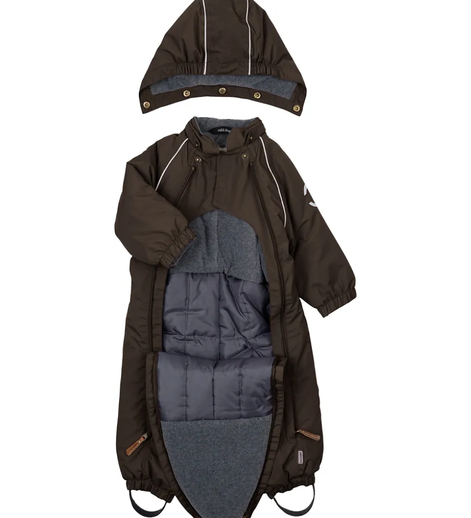 Sej Mikk-Line flyverdragt i mørkebrun med et lilla skær og med refleksdetaljer.