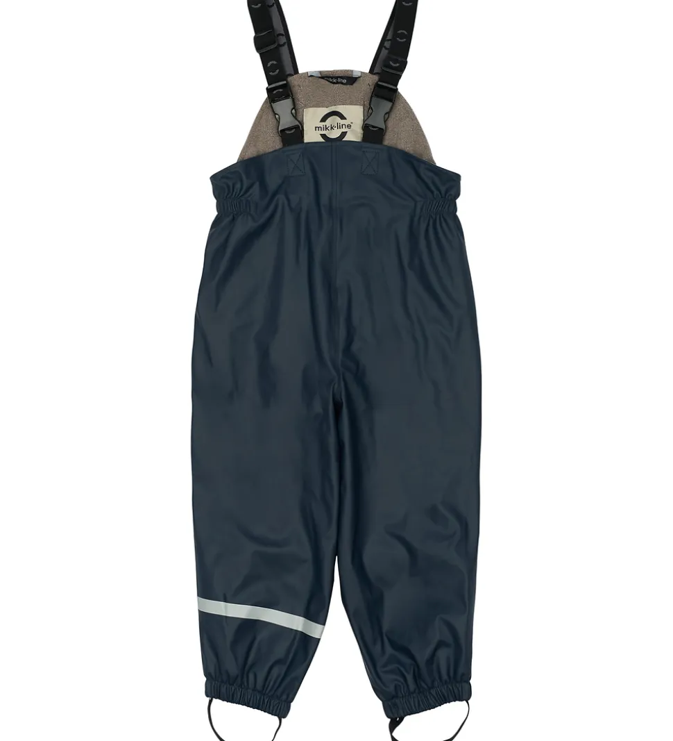 OBS: fra str. 110 (5 år) og opefter er regntøjet med regnbukser uden seler. Regnbukserne har i stedet en indvendigt justerbar elastikkant i livet.